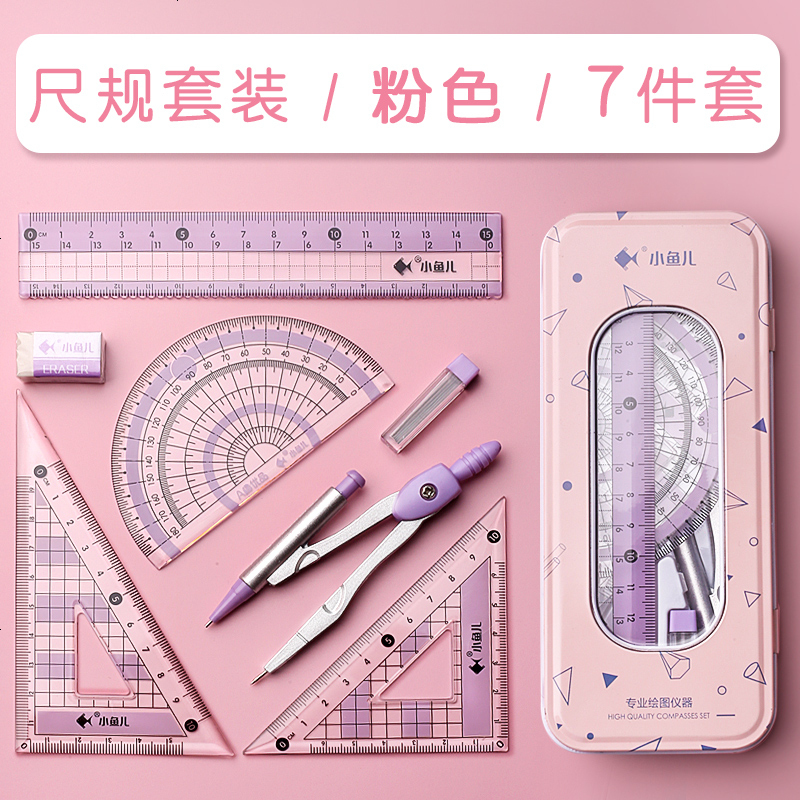 圆规尺子套装可爱三角尺学生文具用品直尺三角板小学生套尺学生用多功能初中生绘图金属尺规学尺规套装 粉色 7件报价 参数 图片 视频 怎么样 问答 苏宁易购