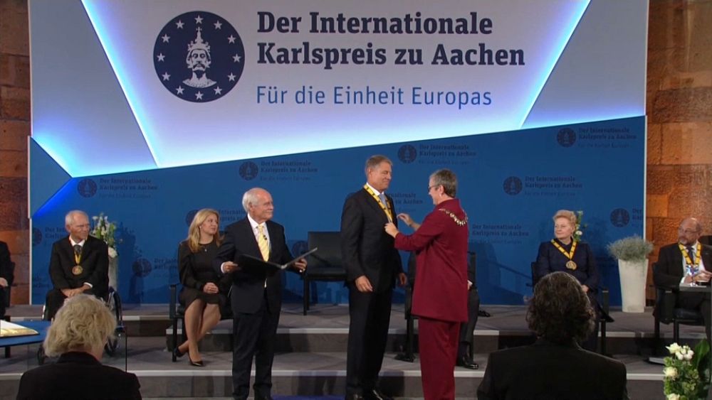 Klaus Iohannis Nimmt Karlspreis Entgegen Euronews