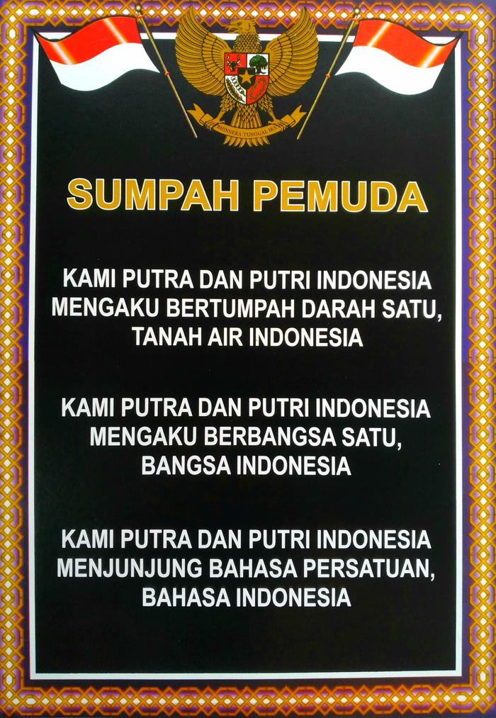 Sumpah Pemuda. The Youth Pledge Sumpah Pemuda was a declaration made on 28 October 1928 by young Indonesian nationalists at a conference in the then-Dutch East Indies. Sumpah pemuda memiliki makna yang begitu mendalam dan tentunya penting ditanamkan dalam jiwa. The history of Indonesia is quite long but theres a milestone that was very important called Sumpah Pemuda or Youth Pledge in which three ideals were proclaimed.