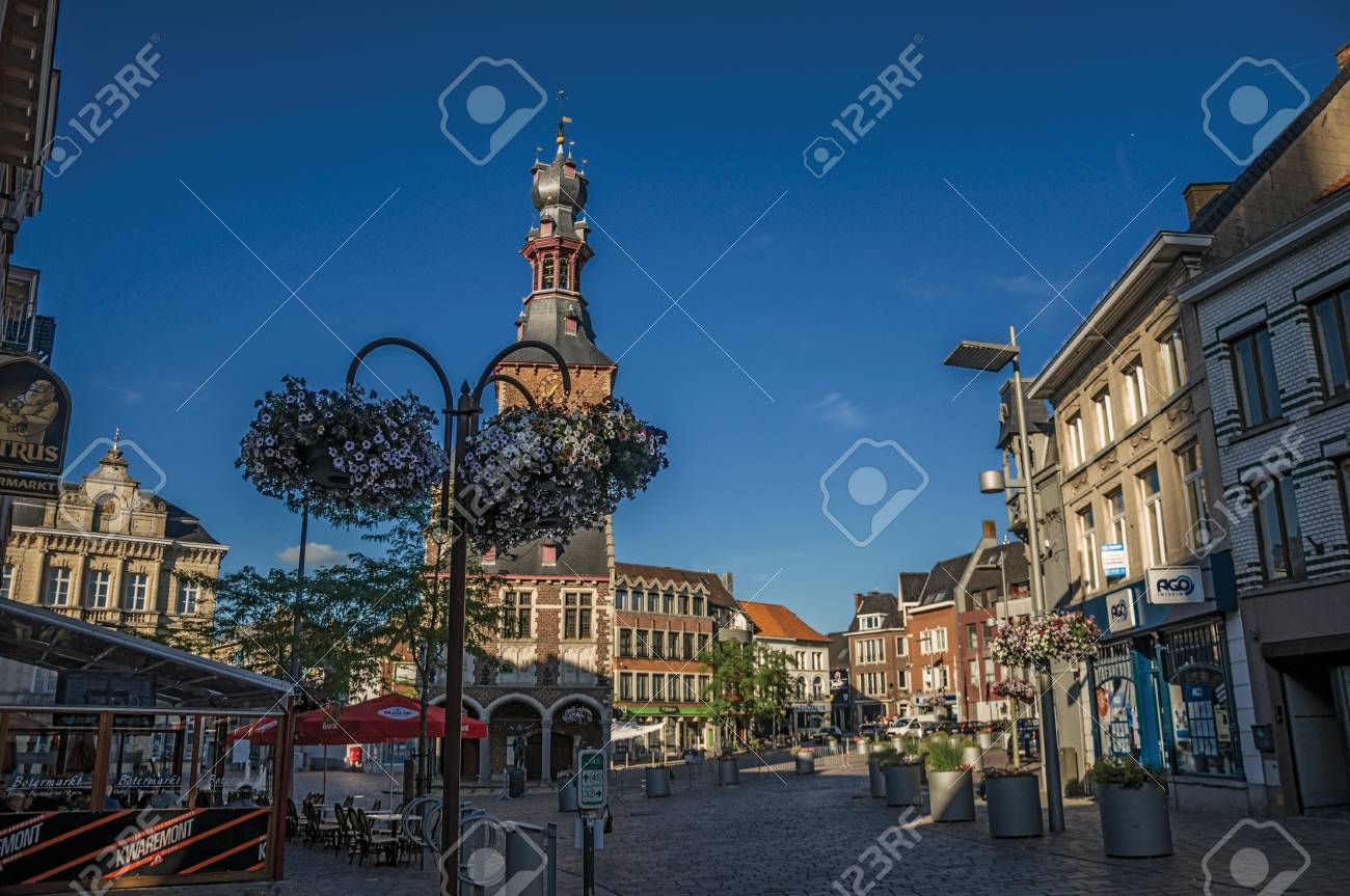 Night View Of Square With Tower At Dusk In Tielt Editorial Photography Image Of Brick Clock 108329182